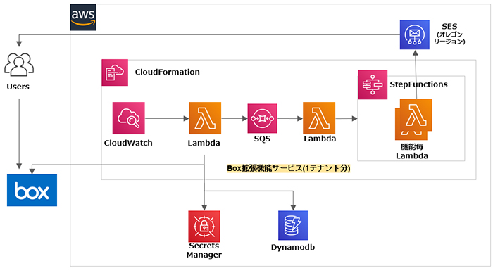 Boxの標準機能にない共有リンクパスワード必須化機能を、AWS上のマネージドサービスを活用して開発しました。